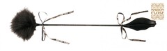 Стек с черным пухом с одной стороны, и пером с другой стороны. Украшен по всей длине лентами. Аксессуар в стиле бурлеск. Коробка в стиле французского шика плюс каждая деталь завернута в упаковочную бумагу с логотипами.