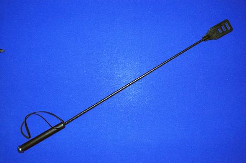 На конце - ударный элемент ввиде ладошки, выполнен из натуральной кожи. На рукоятке имеется петля для фиксации руки. Стек при порке используется как правило в области ягодиц. Гибкий сердечник и кожаная оплетка позволяют избежать травмирования кожи, оставляя при этом ощущения как при порке жесткими розгами.