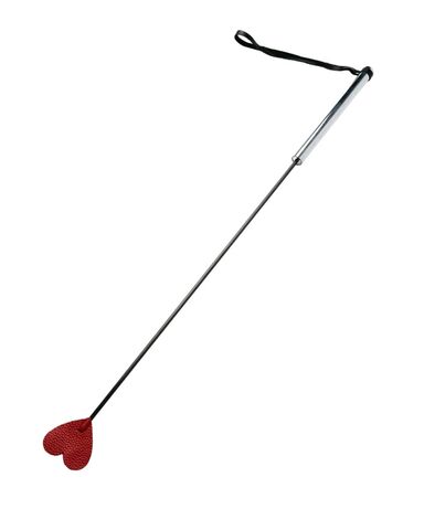 Стек с гибкой, но прочной основой. Наконечник из натуральной кожи красного цвета выполнен в форме сердца. На металлической рукояти закреплена ручка-петля для дополнительной фиксации изделия на запястье. Длина ручки - 20 см.