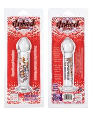 Стеклянная пробка ручной работы имеет классическую форму - широкую головку и тонкий ствол. На теле пробки красивая татуировка с сердцем и якорем, которая навеет прекрасное романтичное настроение.