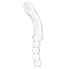 Погрузитесь глубже с изогнутым стеклянным дилдо Glas длиной 12,5 дюймов, имеющим один гладкий изогнутый конец с каплевидным кончиком и другой конец с бусинками для анальной стимуляции. Каждая сторона стимулятора предлагает свою особенную форму удовлетворения. Используйте гладкий каплевидный конец, чтобы воздействовать на точку G у женщины или точку P у мужчины. Анальные шарики на другом конце идеально подходят для анальной стимуляции. Ограничительное основание в центре стимулятора обеспечивает безопасное удовольствие. Боросиликатное стекло, из которого изготовлен двухсторонний стимулятор гигиенически безопасно, является гипоаллергенным и легко чистится. Длина вагинальной части - 16 см, диаметр - 5 см.
