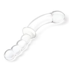 Погрузитесь глубже с изогнутым стеклянным дилдо Glas длиной 12,5 дюймов, имеющим один гладкий изогнутый конец с каплевидным кончиком и другой конец с бусинками для анальной стимуляции. Каждая сторона стимулятора предлагает свою особенную форму удовлетворения. Используйте гладкий каплевидный конец, чтобы воздействовать на точку G у женщины или точку P у мужчины. Анальные шарики на другом конце идеально подходят для анальной стимуляции. Ограничительное основание в центре стимулятора обеспечивает безопасное удовольствие. Боросиликатное стекло, из которого изготовлен двухсторонний стимулятор гигиенически безопасно, является гипоаллергенным и легко чистится. Длина вагинальной части - 16 см, диаметр - 5 см.