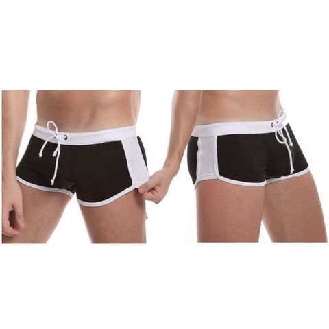 Стильные черные мужские плавки с контрастным белым поясом.