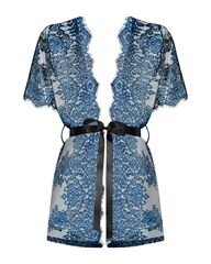 Восхитительный короткий пеньюар из коллекции Yassmyne из прозрачного кружева с цветочным рисунком, на талии пояс из атласной ленты.