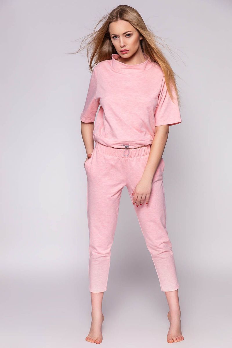 Стильный костюм Loretta состоит из кофты с воротником стойка и укороченных брюк. Кофта свободного кроя с короткими рукавами, низ на кулисе. Брюки зауженного кроя с карманами, на широкой мягкой резинке. В комплекте: кофта, брючки.