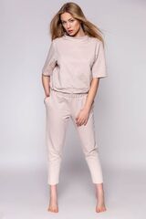 Стильный костюм Nancy состоит из кофты с воротником стойка и укороченных брюк. Кофта свободного кроя с короткими рукавами, низ на кулисе. Брюки зауженного кроя с карманами, на широкой мягкой резинке. В комплекте: кофта, брючки.