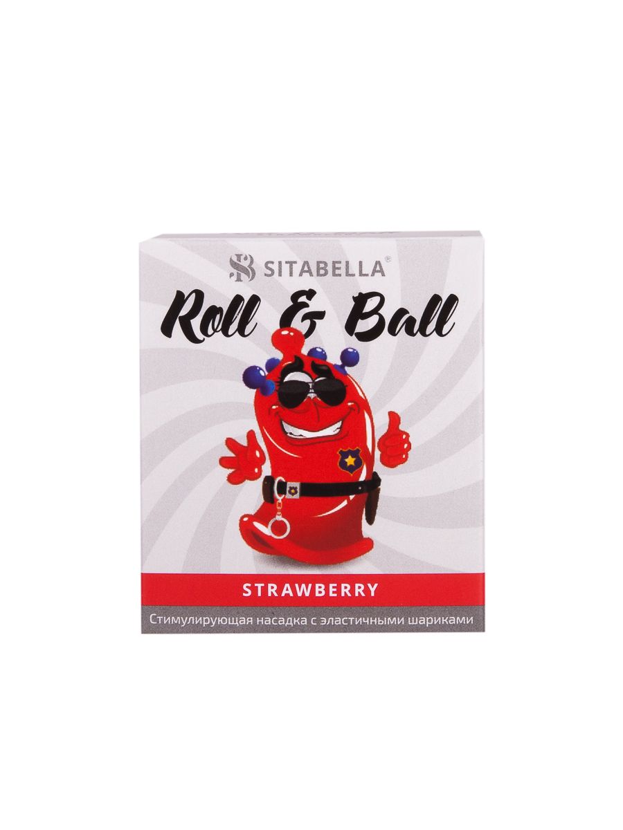 Roll & Ball – прозрачная красная стимулирующая насадка в виде презерватива с накопителем цилиндрической формы и пятью эластичными синими шариками. Насадка покрыта силиконовой смазкой с ароматом клубники, которая обеспечивает легкое и комфортное скольжение. Продукт не является изделием медицинского назначения! Одноразовая стимулирующая насадка не подлежит сертификации и обязательной маркировке, изготовлена по ТУ 2536-008-0089858735-2016, ТН ВЭД 4014100000.