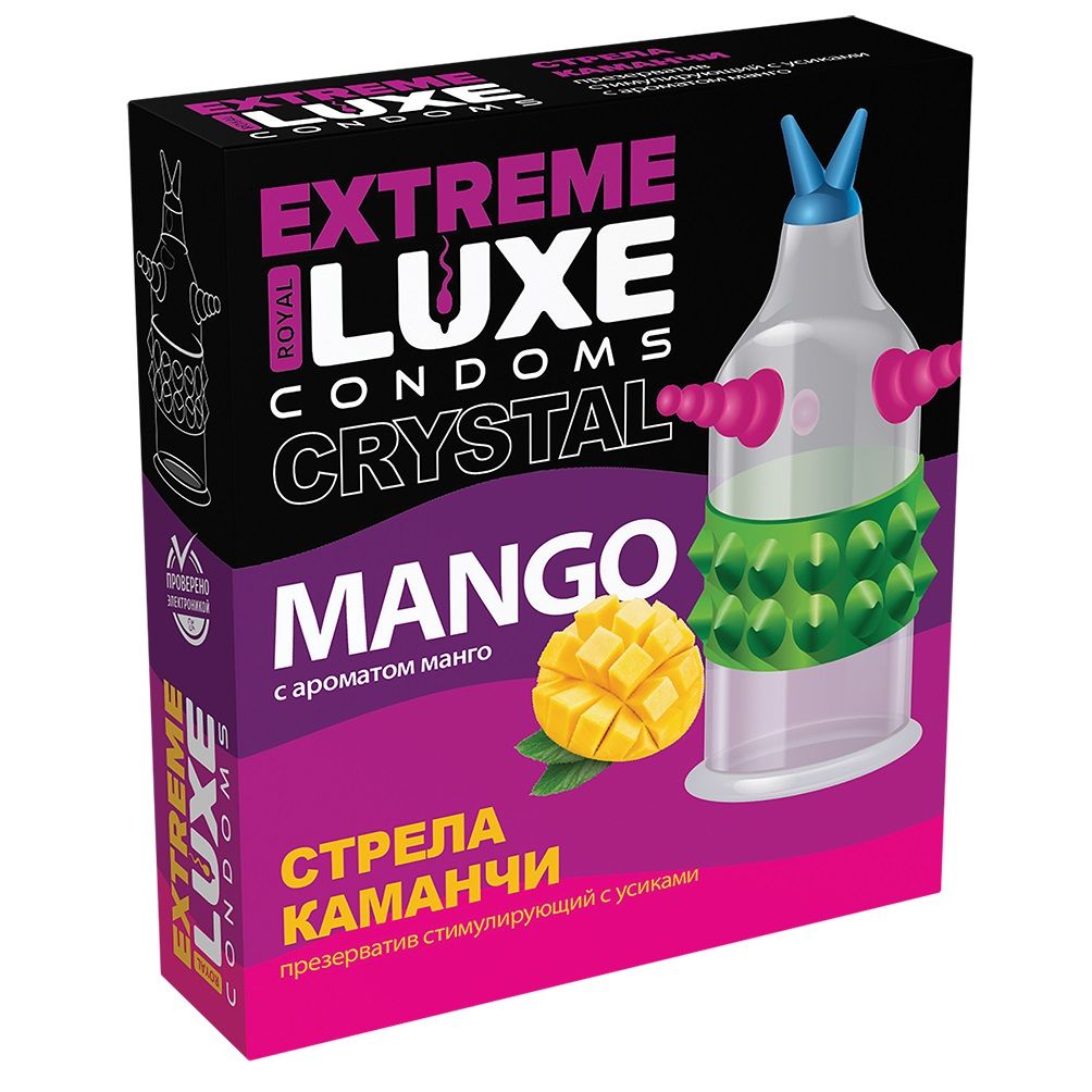 Отбрось сомнения и предрассудки, пора довериться желаниям и погрузиться в первобытные инстинкты. Запусти свою стрелу Команчи прямо в ее нежное тело с презервативом Luxe серии Extreme. Стимулирующий рельеф из выпуклых шипов и конусов не оставляет шансов избежать оргазма, ведь стрела Команчи бьет прямо в цель. Латексный презерватив обеспечивает надежную защиту, а точечная стимуляция уверенно приведет ее к наивысшей точке наслаждения. Экзотический аромат манго доставит дополнительное удовольствие обонятельным рецепторам. Пора расширять границы наслаждения с презервативами Luxe серии Extreme - надевай и стимулируй. Номинальная ширина - 52 мм.