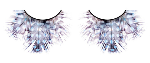 Очень нарядные ресницы из мягких высококачественных перьев ручной обработки голубого и лилового цветов, пушистые, с рисунком в крапинку. Идеальны для выхода, привлечения внимания и флирта. В комплект входит клей для легкого и комфортного прикрепления ресниц.