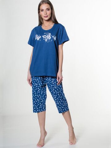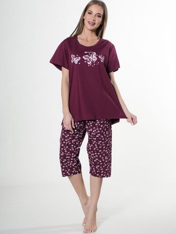 Трикотажный комплект с капри, ткань в рисунок, футболка с коротким рукавом и с принтом впереди. В комплекте: футболка: капри.