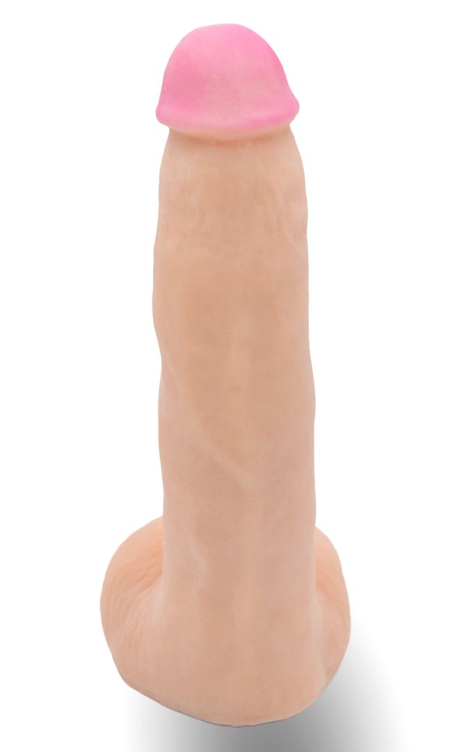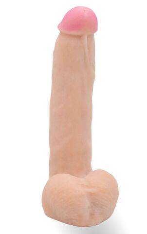 Это распространенный размер, подходящий большинству рожавших женщин. Реалистик имеет изгиб. За счет этого его можно вращать на бобышке, менять направление и даже ласкать мошонкой клитор. Имеет характеристики эрегированного мужского пениса. Рабочая длина - 17 см.