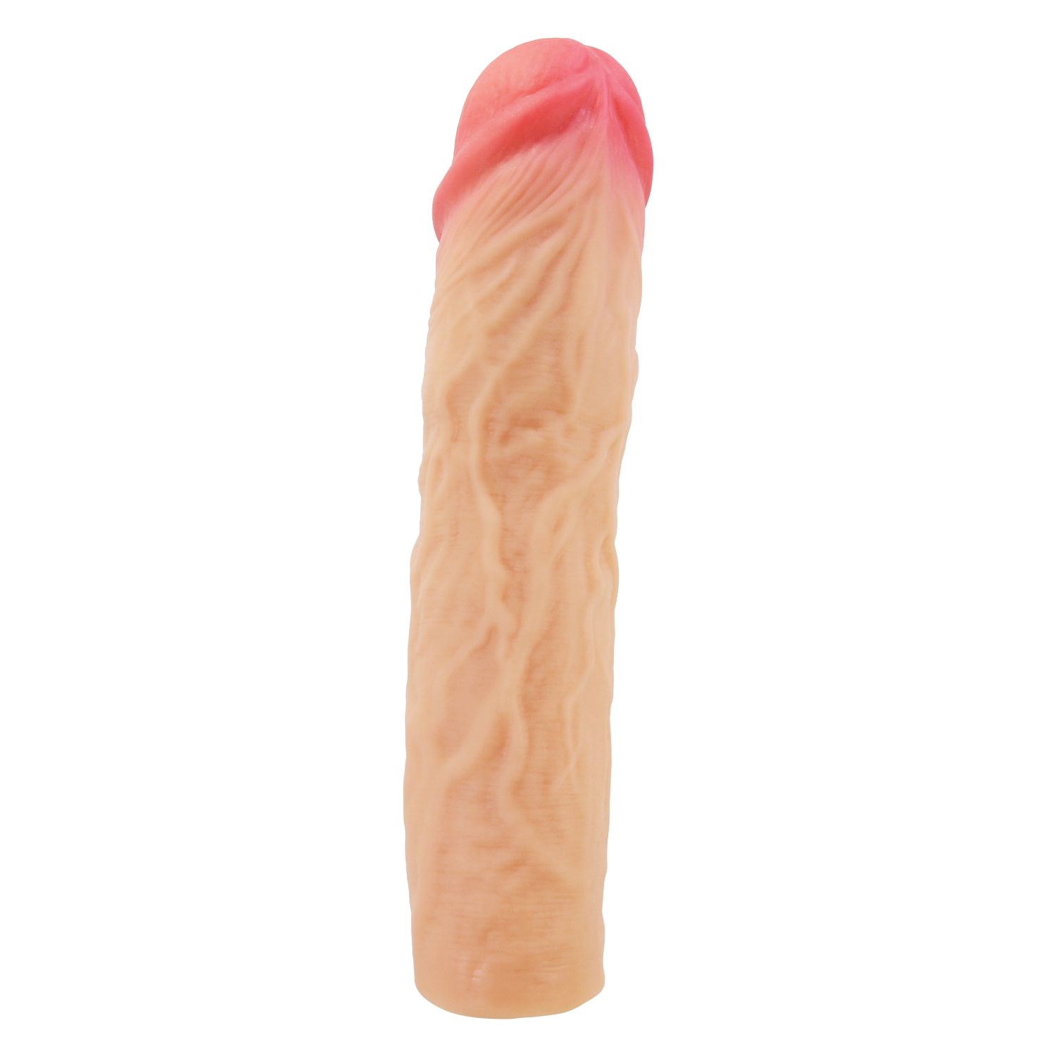 Насадка из TPR добавляет размер и реалистичность. Прирост длины - 7,6 см. Вены и объёмная головка на внешней стороне стимулируют партнёра естественно. Гладкий внутренний канал обхватывает член, усиливая ощущения.
