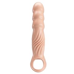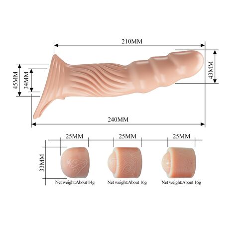Насадка на пенис – это отличное и безопасное средство увеличить половой член, продлив при этом секс и подарив партнерше море приятных возбуждающих ощущений. Этот интим-товар выполнен из качественного эластичного материала, способного растягиваться под размер пениса, плотно прилегая к нему и не соскальзывая. Изделие имеет 3 сменных вкладыша, каждый из которых увеличивает длину пениса на 1 см. Насадка обладает дополнительным рельефом, который подарит дополнительную стимуляцию партнерше. Рабочая длина - 21 см.