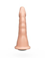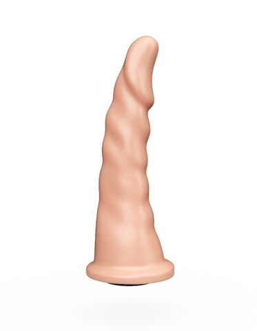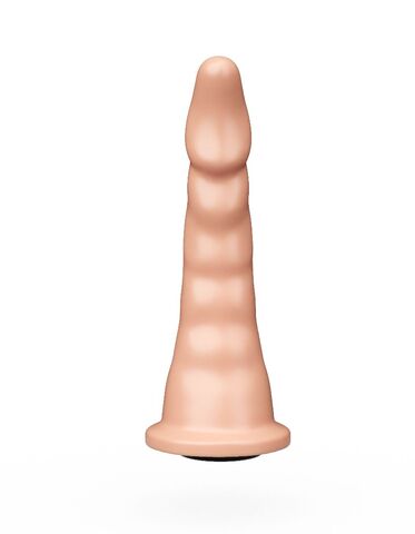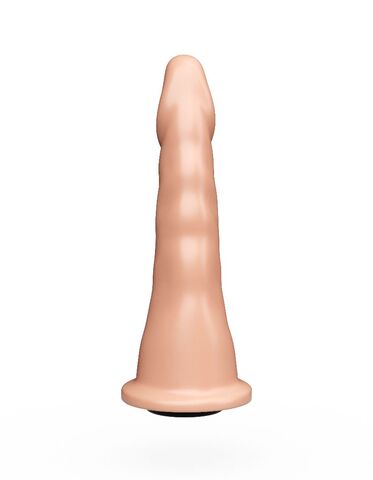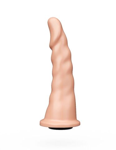 Форма насадки входит в рейтинг самых продаваемых насадок и плагов. Ее форма подходит как для вагинального, так и анального секса. Полужесткая рецептура материала по жесткости близка к характеристикам фаллоса. Насадка имеет платформочку для фиксации с помощью кольца страпона и снабжена коннектором, если конструкция пояса предусматривает другой способ фиксации. Универсальность этой насадки не только в этом, но и в том, что тонкая верхняя часть обладает гибкостью, легко вводится и тем самым снижает риск травматизации при узком или ригидном влагалище, анусе. Рабочая длина - 17 см.
