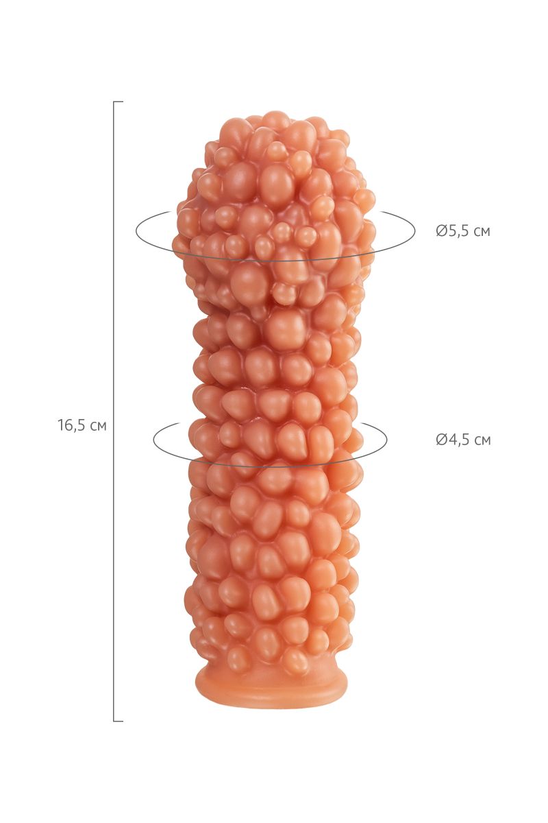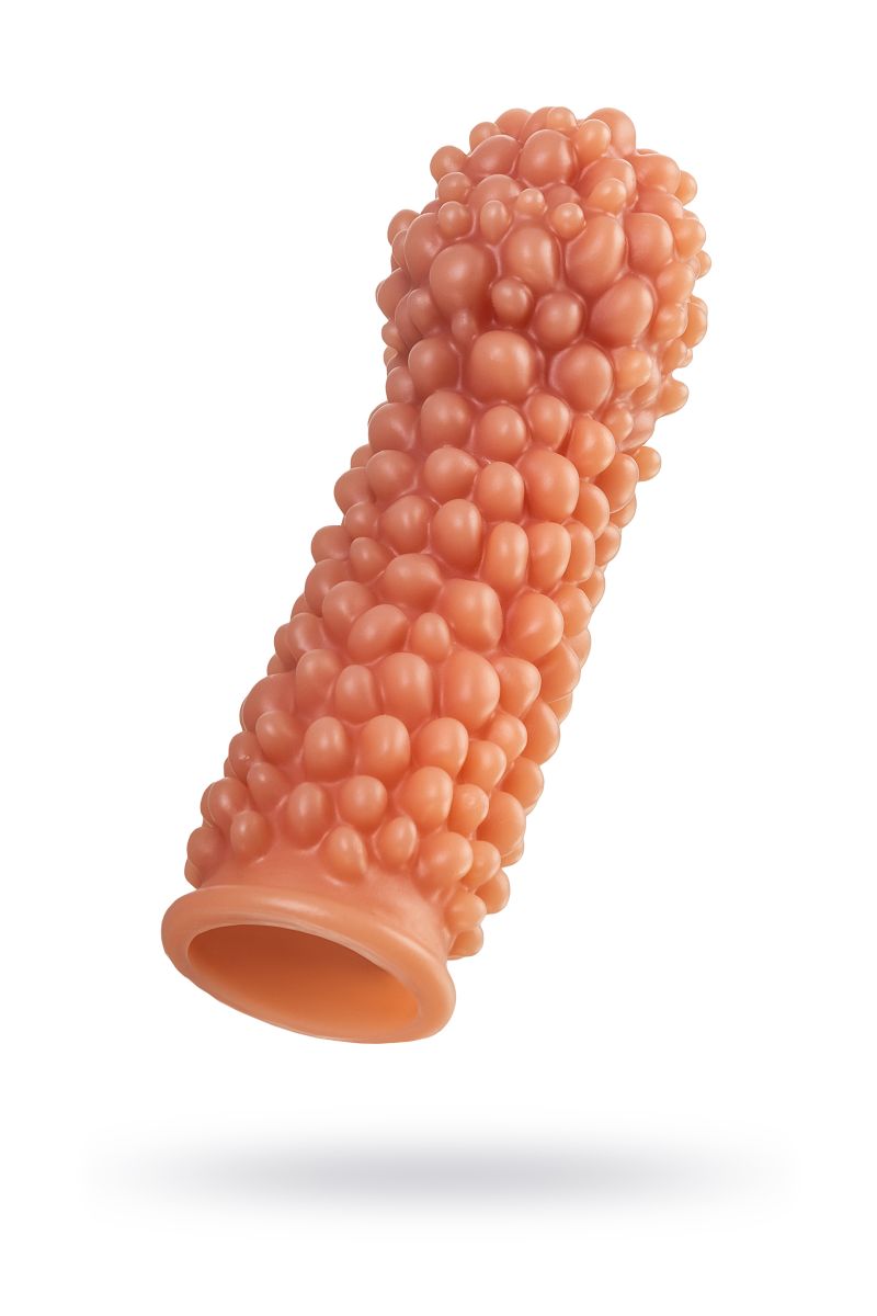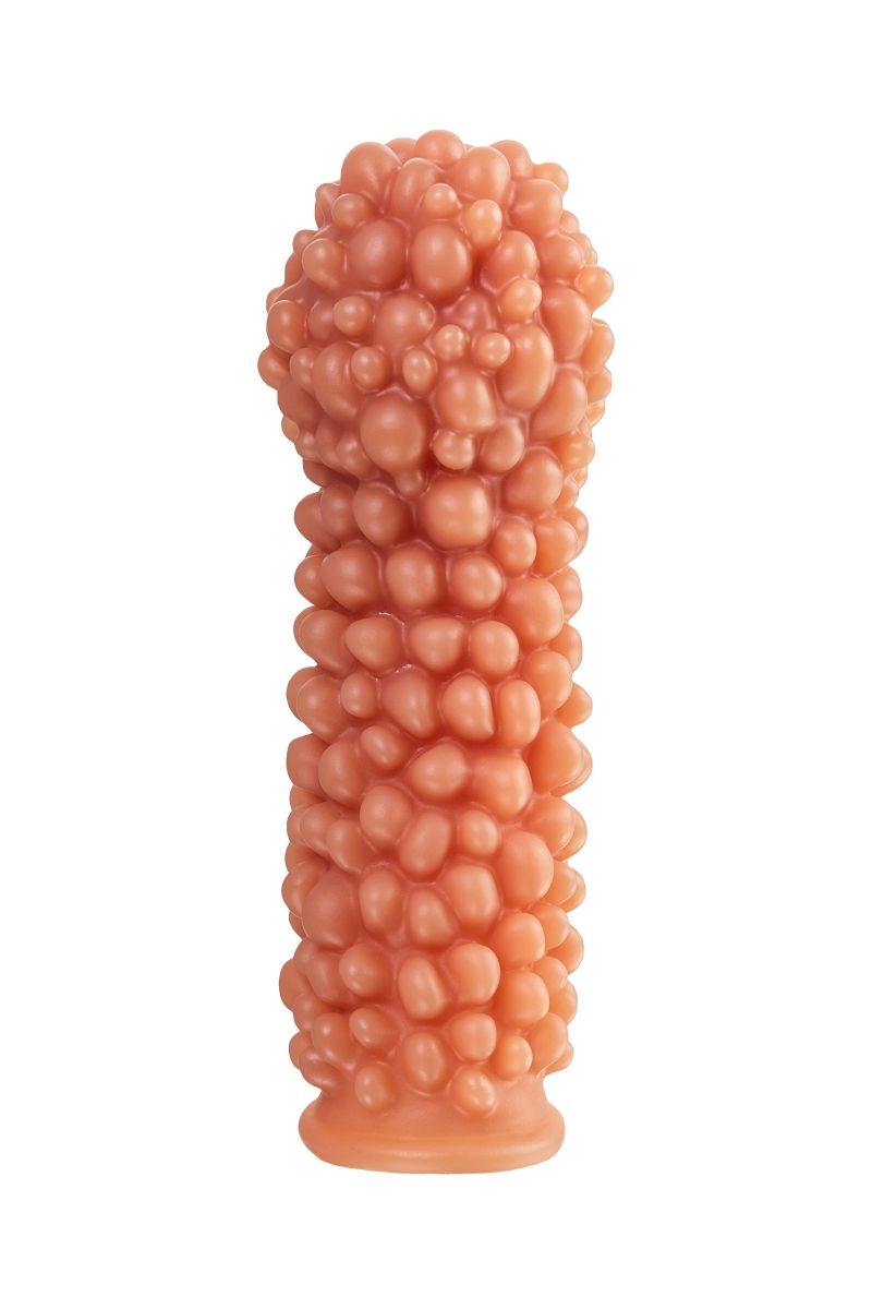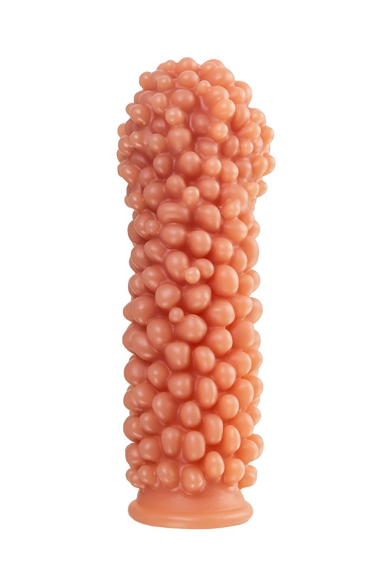 Насадка очень эластичная, имеет узор по всей поверхности, для стимуляции эрогенных зон партнера, увеличивает толщину головки и ствола пениса.