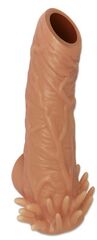 Насадка плотно прилегает к пенису, создавая дополнительную толщину и оставляя головку открытой. Это позволяет сохранить чувствительность головки, задерживая эякуляцию. В основании есть отверстие для мошонки, с помощью которого вы надежно зафиксируете насадку на пенисе, не ограничиваясь в активных движениях. Насадка, за счет плотного облегания мошонки и головки, усиливает эрекцию.
