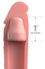 Насадка на пенис от Fantasy X-Tensions Elite оснащена втулкой из твердого силикона, которая удерживает форму и обеспечивает плотность изделия. Сам удлинитель изготовлен из более мягкого и эластичного силикона. Поэтому насадка легко надевается и плотно прилегает к коже, что продлевает эрекцию. Мягкий материал также позволяет укоротить изделие ножницами, так чтобы его размер стал комфортным именно для вас. Изделие увеличивает длину пениса на 5,1 см и утолщает его на 66%. Длина втулки - 5,1 см.