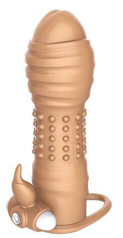 Насадка на половой член с клиторальным стимулятором и вибропулей. Длина полости - 12 см.