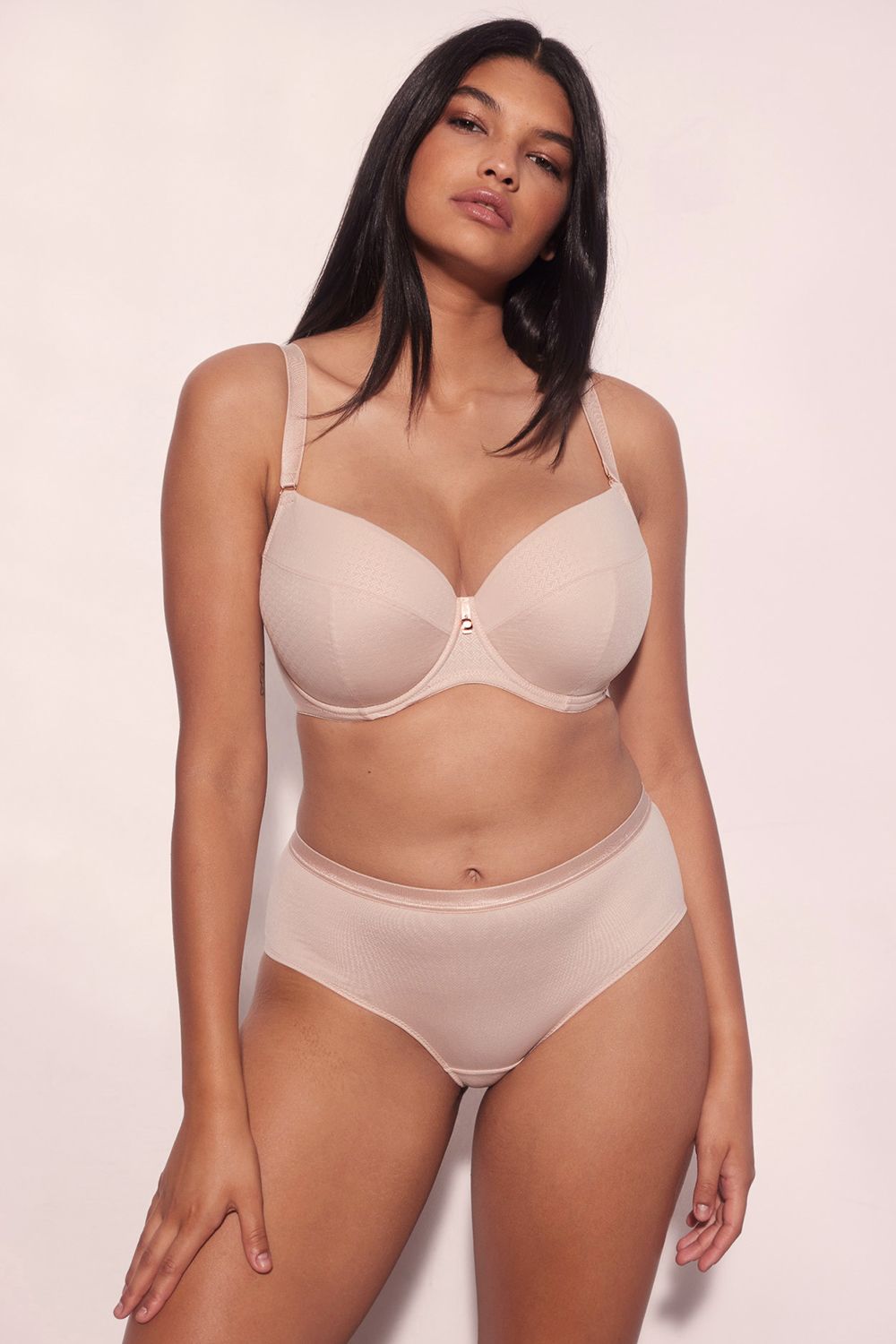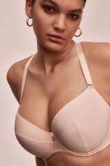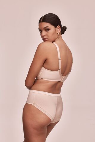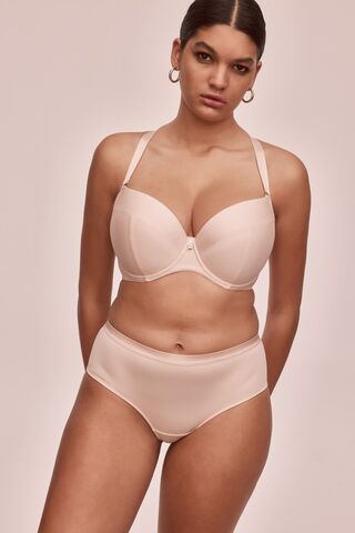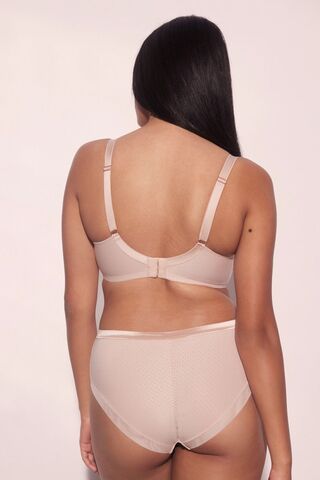 Бюстгальтер Diamante выполнен на основе модели Kelly 04 U, на косточках, чашки шитые на тонком поролоне, внутренняя сторона проложена хлопковым трикотажем, внешняя сторона чашек и пояс из трикотажа с тиснением по типу жаккард. Бретельки отстёгиваются, регулируются по длине, на спине можно перекрещивать, на спине удлинитель на крючках. Фурнитура металлическая цвета меди. Самое главное его преимущество: абсолютно гладкая поверхность ткани.