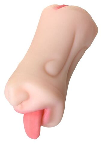 Телесный двусторонний мастурбатор Fruity Tongue - ротик и вагина