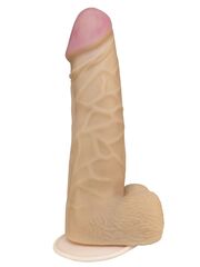 Огромный реалистичный фаллоимитатор телесного цвета на присоске. Имеет форму члена с мошонкой и ярко выраженной розовой головкой. Необычайно приятный, упругий, рельефный, выполненный из киберкожи, не имеет швов. Имеет ребристую поверхность для дополнительной стимуляции. Минимальный диаметр - 5,2 см.