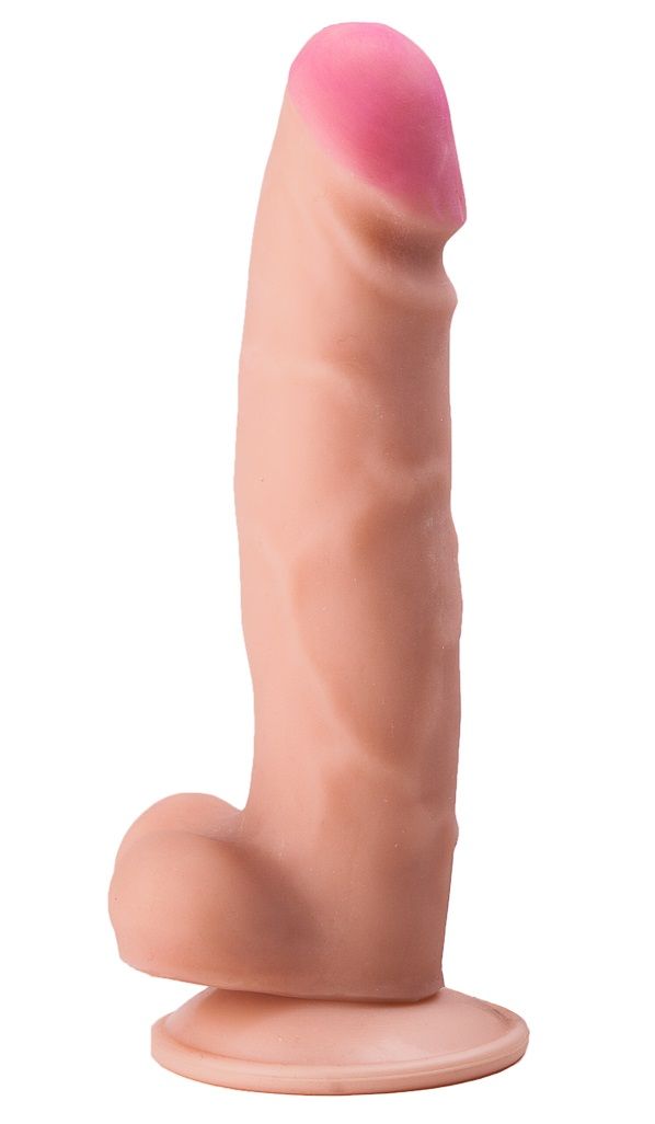 Телесный фаллоимитатор на присоске с выраженным рельефом - 19 см.