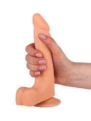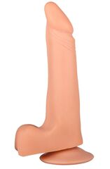 Телесный фаллоимитатор с мошонкой на присоске - 19 см.
