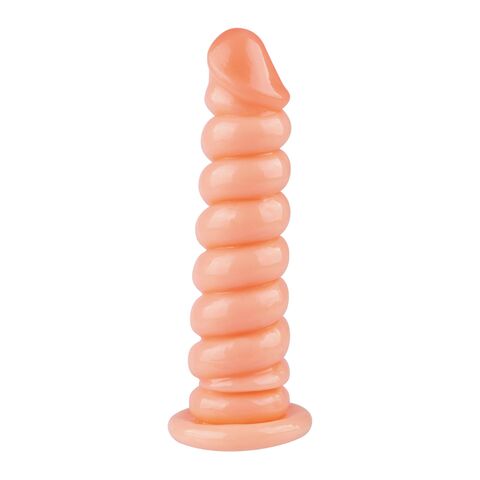Телесный фаллоимитатор винтовой формы на присоске - 18,5 см.