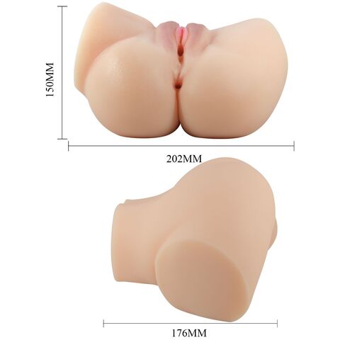 Телесный мастурбатор-полуторс Emilia с вибрацией. Два рабочих отверстия и тоннеля. Размеры - 20,2 х 17,6 х 15 см.