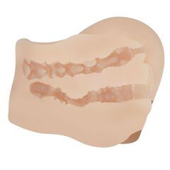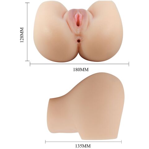 Телесный мастурбатор-полуторс Mila с вибрацией. Два рабочих отверстия и два тоннеля. Размеры - 18 х 13,5 х 12,8 см.