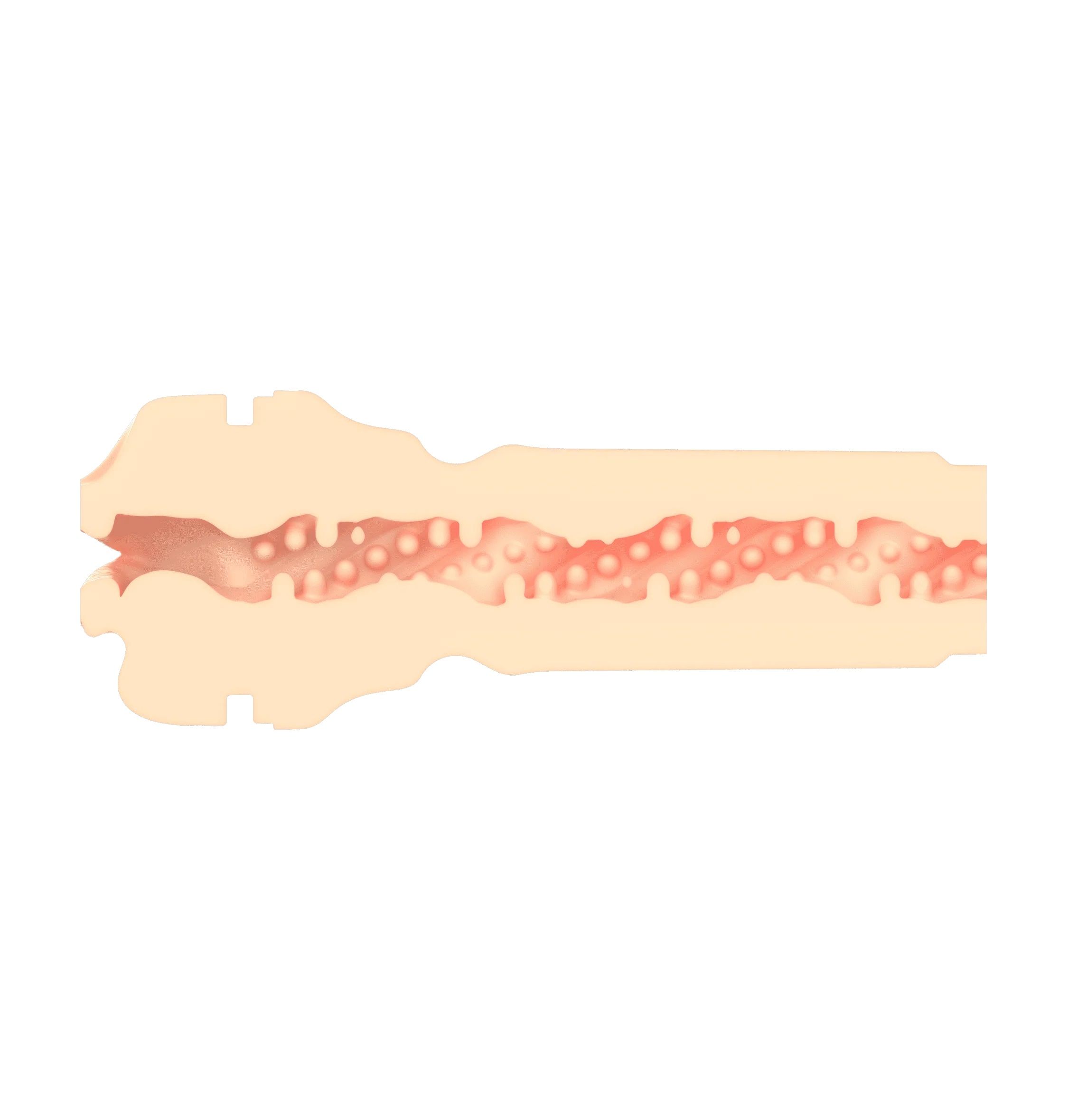 Разнообразный внутренний рельеф с плотным обхватом обеспечивает интенсивную стимуляцию до самого оргазма во время мастурбации. Сам мастурбатор создан из материала, похожего на кожу. Он очень прост в уходе и может быть легко извлечен из удобного пластикового корпуса для очистки.