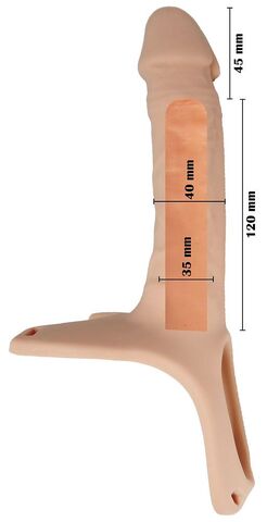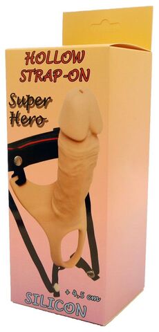 Полый фаллопротез на эластичном ремешке. Удобные эластичные ремни на липучке легко адаптируются к большинству размеров(до 105 см). Удлиняет пенис на 4,5 см. Материал силикон. Рабочая длина - 16,5 см.
