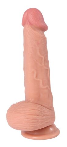 Телесный реалистичный фаллоимитатор REAL Dual Layer с мошонкой на присоске - 20 см.