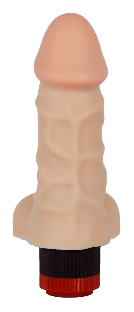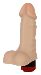 Телесный реалистичный вибратор с мошонкой - 16,5 см.