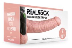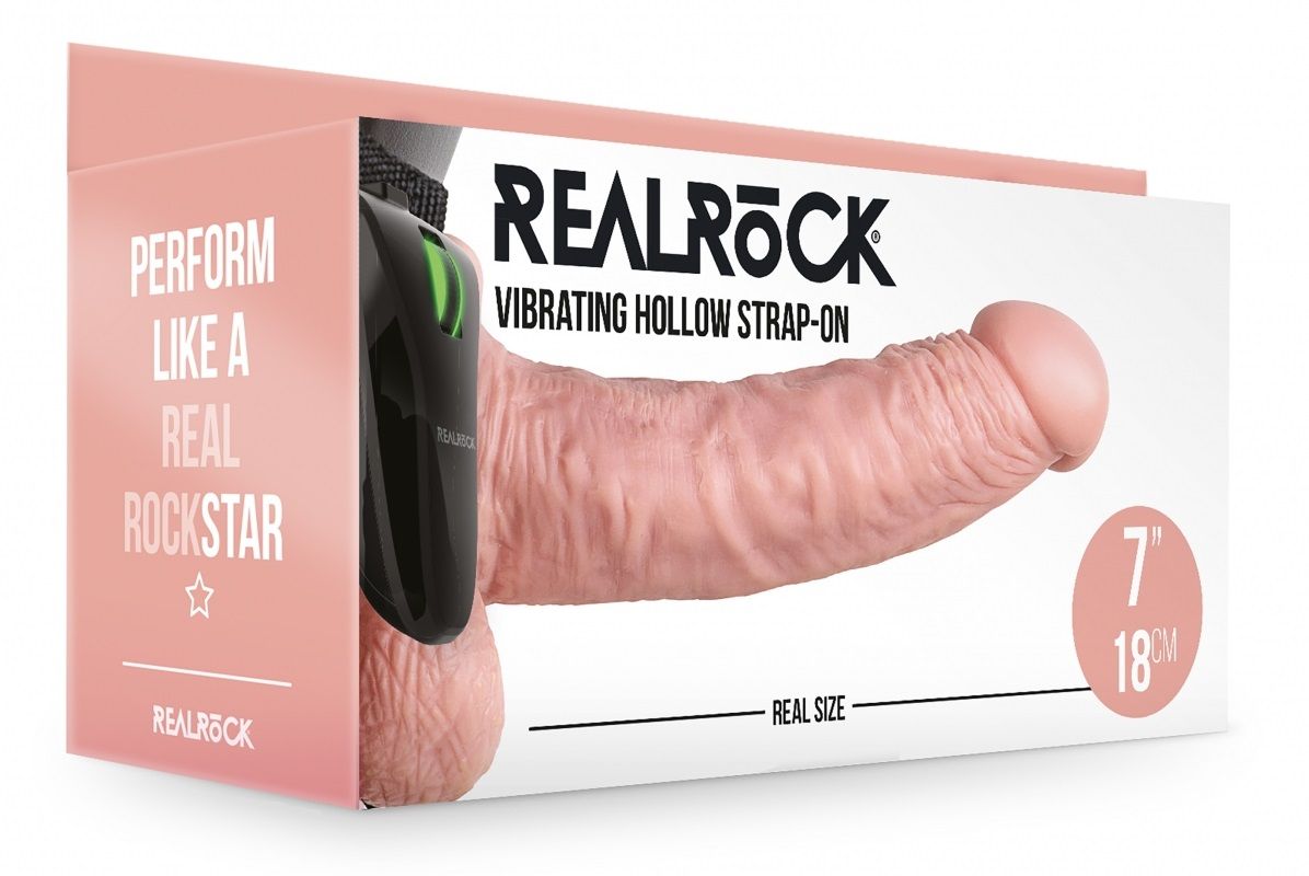 Полые страпоны RealRock отличаются от привычных моделей. Ствол значительно более приятный на ощупь и может слегка прогибаться, больше напоминает силиконовые дилдо, чем жесткий классический фаллопротез. Такая гибкость позволяет лучше подстраиваться под особенности партнера, принося больше удовольствия. Реалистичные вены на стволе усилят стимуляцию. Слегка изогнутая форма позволит эффективнее стимулировать точку G/P партнера. Оснащены удобным поясом с хорошей регулировкой и фиксацией. Данная модель оснащена вибратором в передней части ствола. Скорость регулируется колесиком на пульте управления. Пульт управления можно закрепить на поясе. Глубина полости - 16,1 см, диаметр - 3 см.