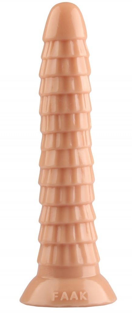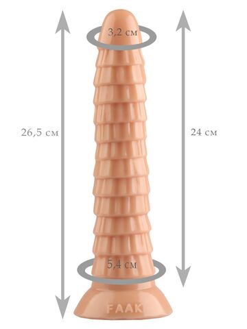 Телесный рельефный фантазийный фаллоимитатор - 26,5 см.