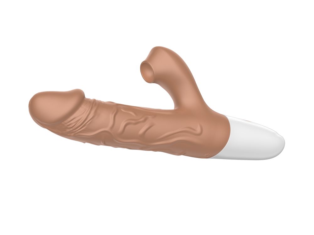 Вибратор-кролик в реалистичном дизайне в виде мужского пениса с текстурированными венами для большей стимуляции. Вибратор оснащен 10 режимами вибрации, 3 режимами пенетрации и 7 режимами сосания, что позволяет подобрать идеальную комбинацию для любого настроения. Изготовленный из мягкого и безопасного силикона с ABS-пластиком, вибратор приятен на ощупь и гипоаллергенен. Водонепроницаемость IPX7.