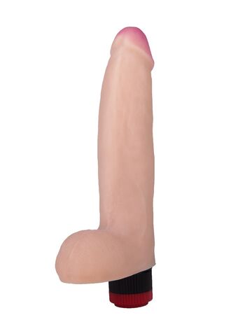 Телесный вибратор-реалистик с мошонкой - 23,7 см.