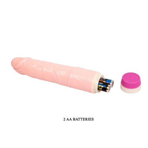 Вибратор телесного цвета. Имеет форму члена с ярко выраженной головкой. Рельефный, выполненный из материала ТПР. Скорость вибрации регулируется кнопкой у основания изделия. Рабочая длина - 19 см.
