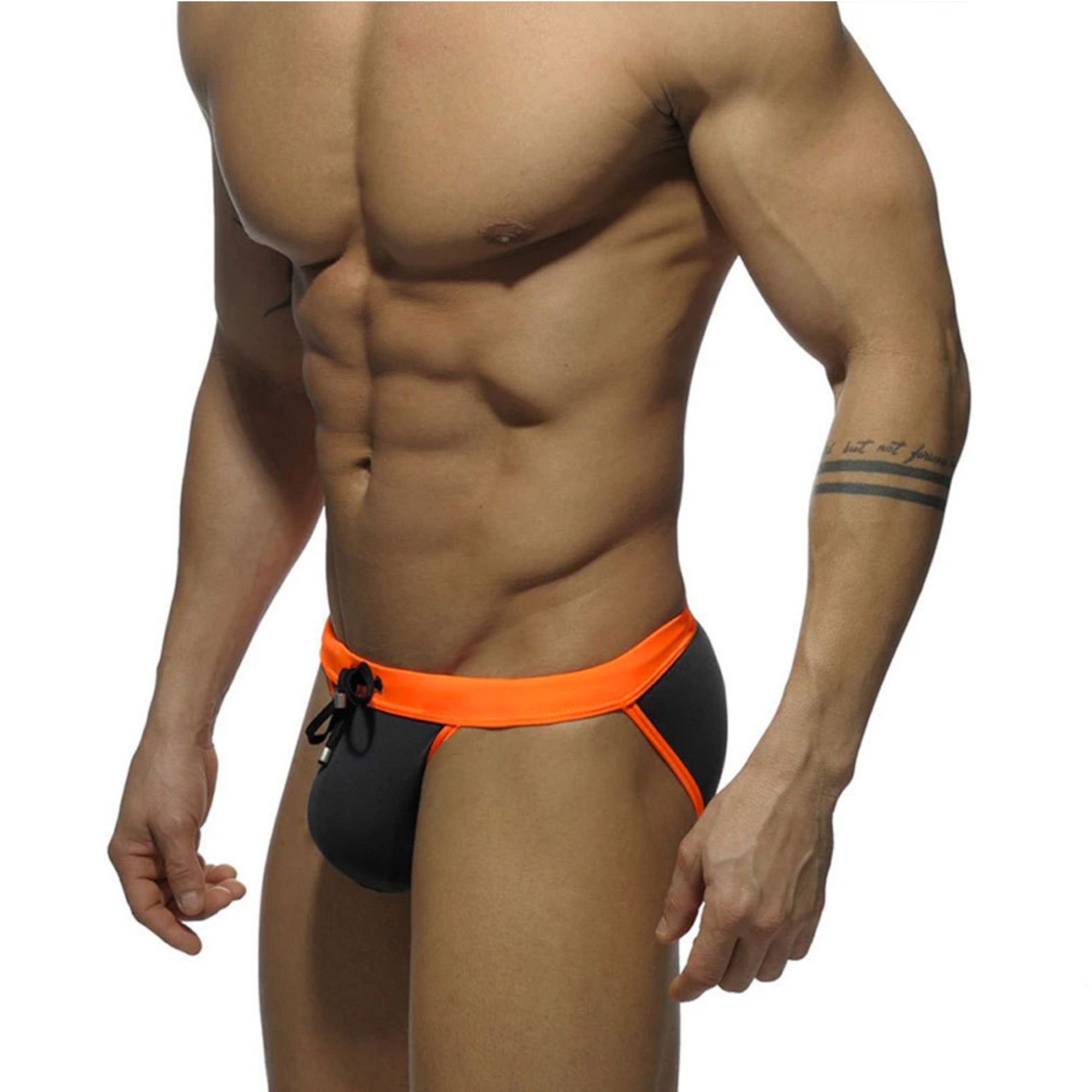 Темно-серые мужские плавки-танга с ярким поясом