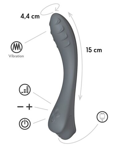 Строгий графитовый вибратор Apus способен прочувствовать и промассажировать всю внутреннюю поверхность влагалища и особое внимание уделить точке G. В этом тихом, но мощном гаджете 8 режимов вибрации для постепенного повышения градуса возбуждения и отдельная кнопка погружения в пучину оргазмических ощущений. Идеально гладкий гнущийся ствол с естесственным загибом, выполненный из полностью безопасного силикона удобен как для соло, так и для совместной чувственной игры. Не отказывай себе в удовольствии! Рабочая длина - 15 см.