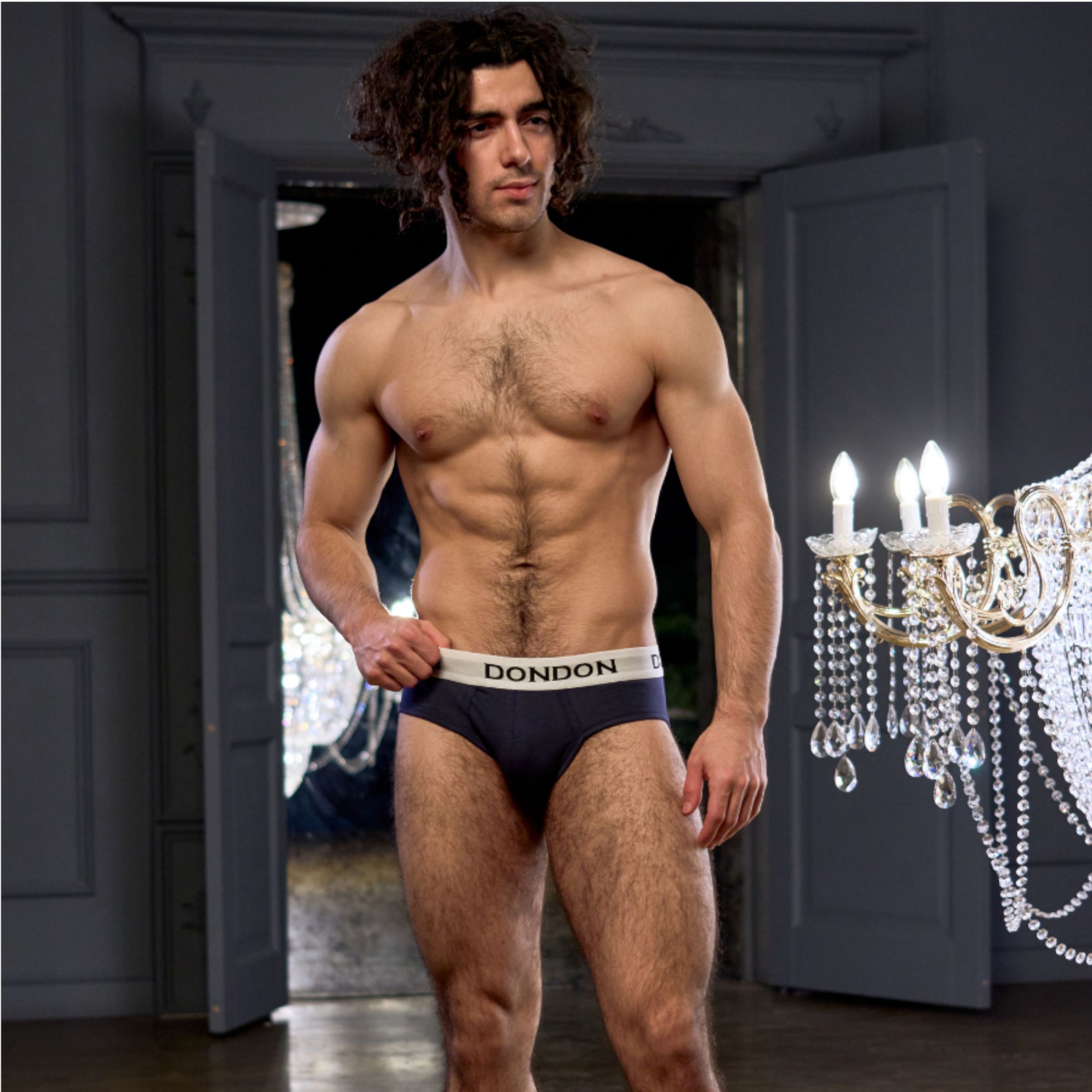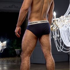 Темно-синие хлопковые мужские трусы-брифы.