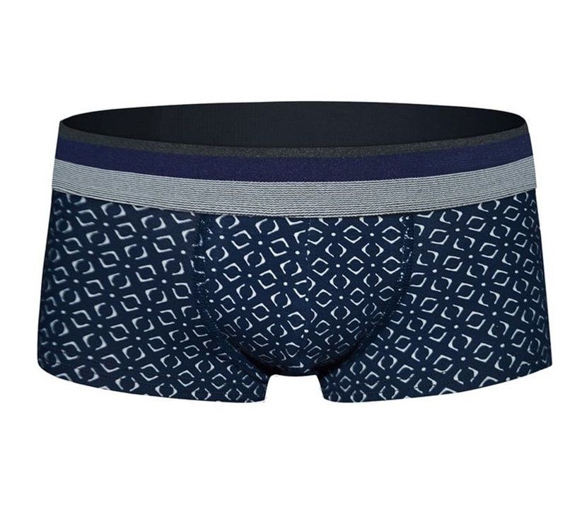 Темно-синие хлопковые трусы-хипсы с геометрическим принтом.