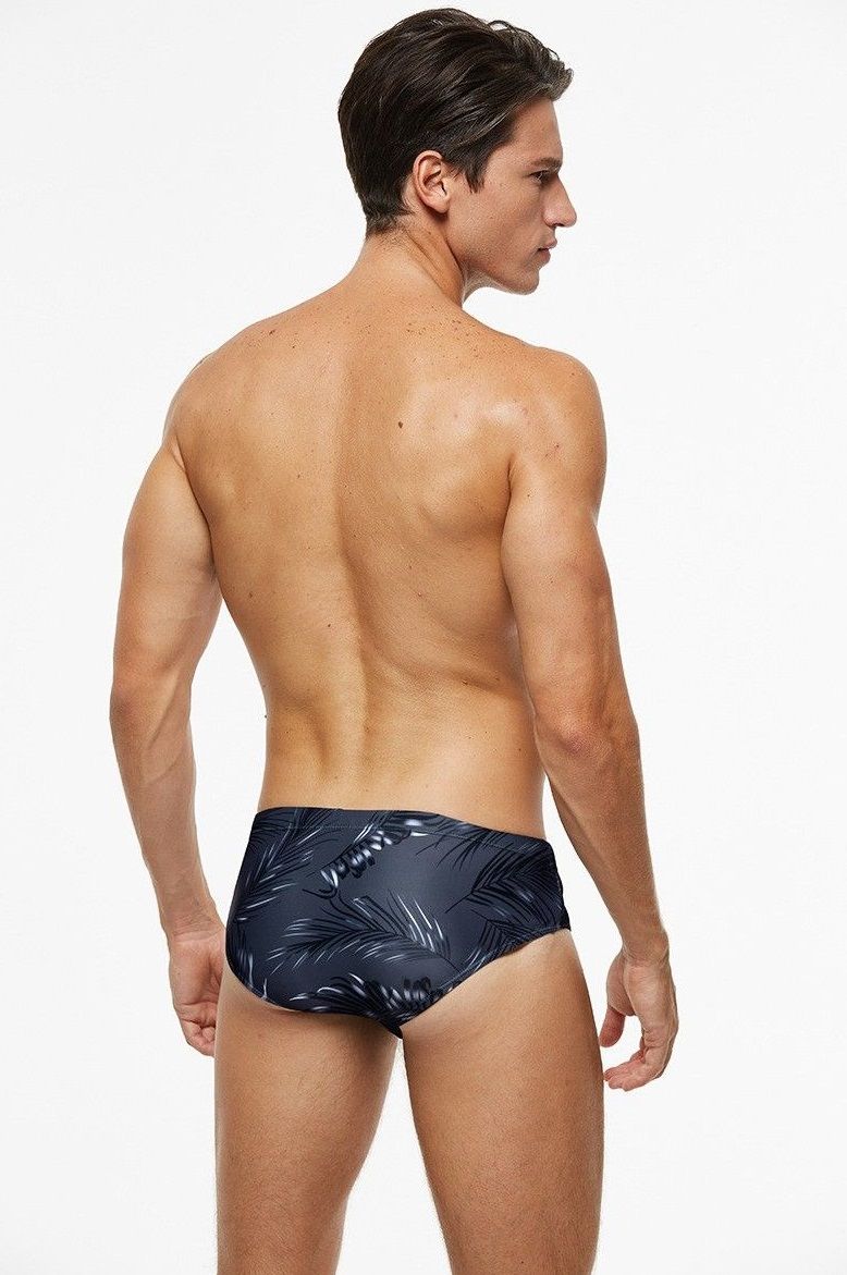 Темно-синие классические плавки с растительным принтом.
