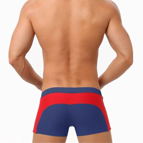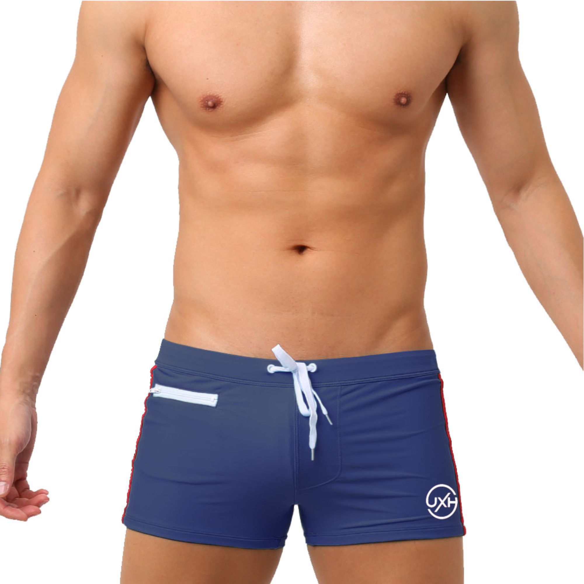 Темно-синие мужские плавки-боксеры с мини-кармашком на замке.