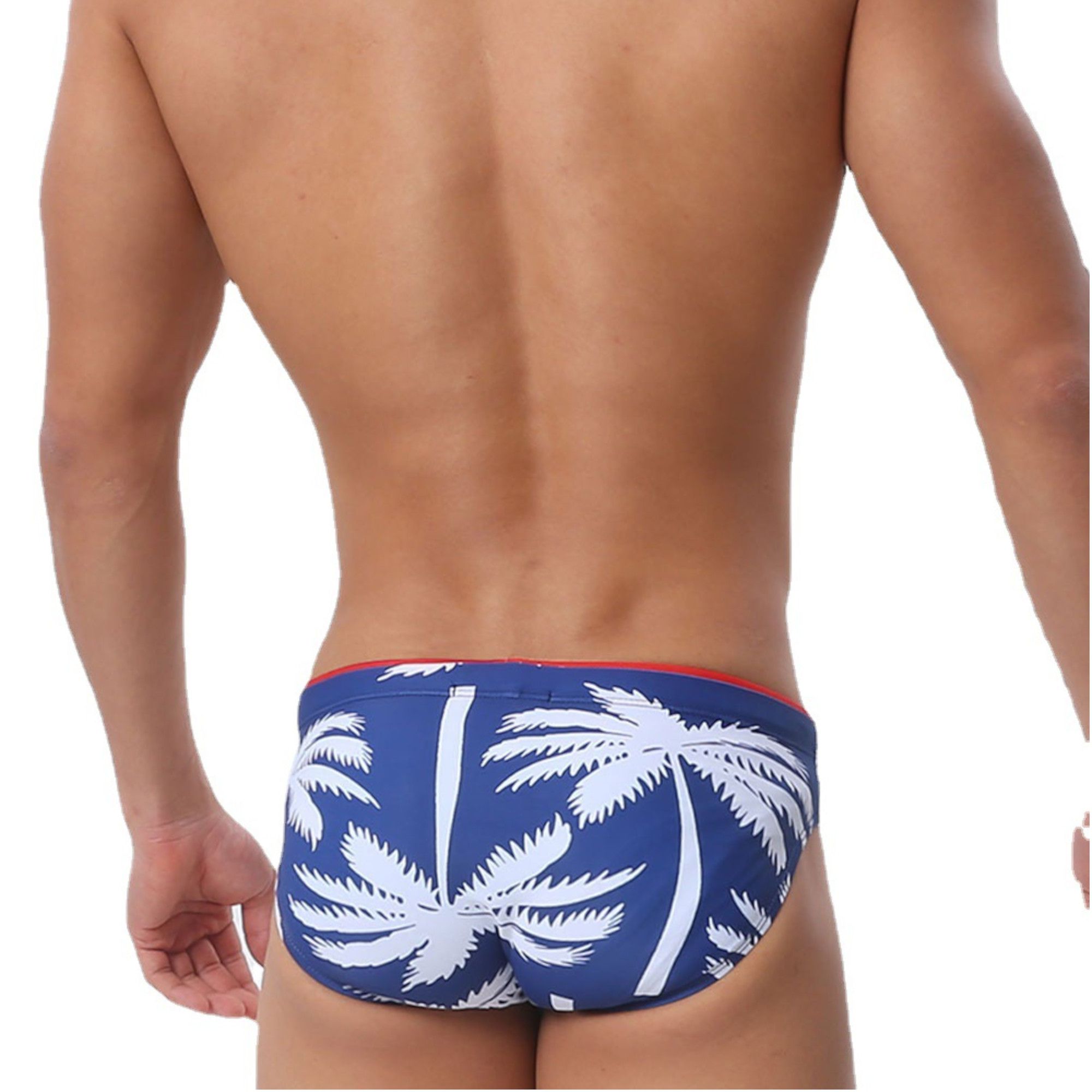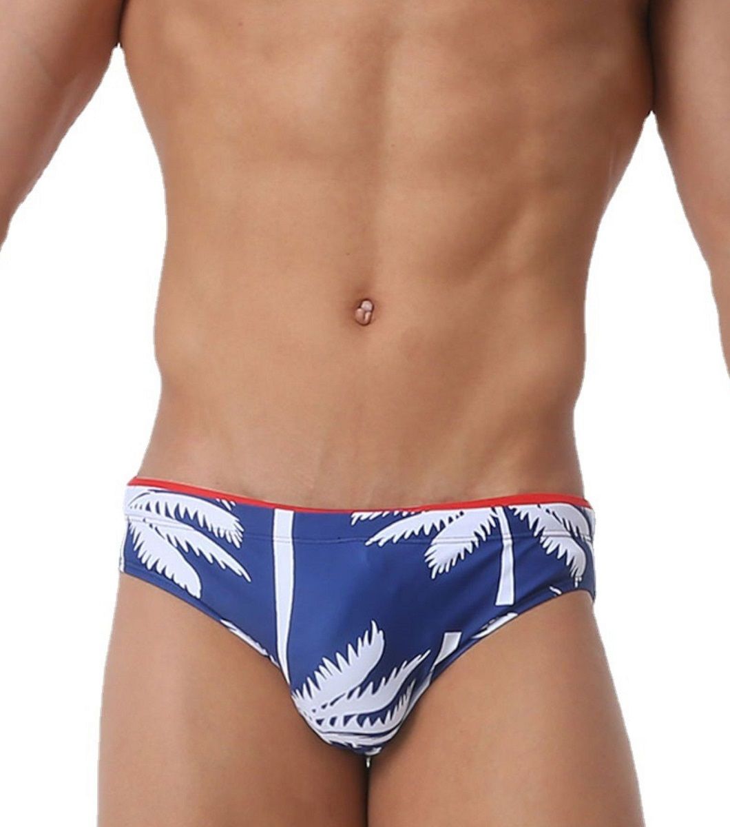 Темно-синие мужские плавки-брифы с принтом в виде пальм