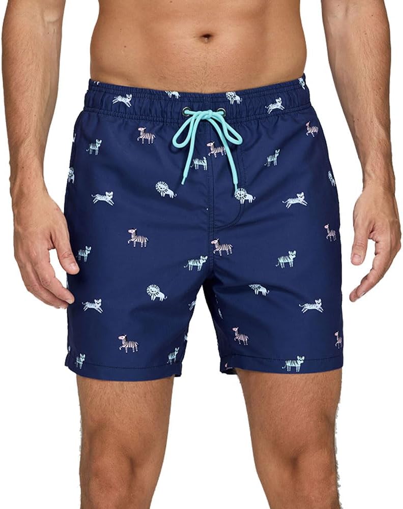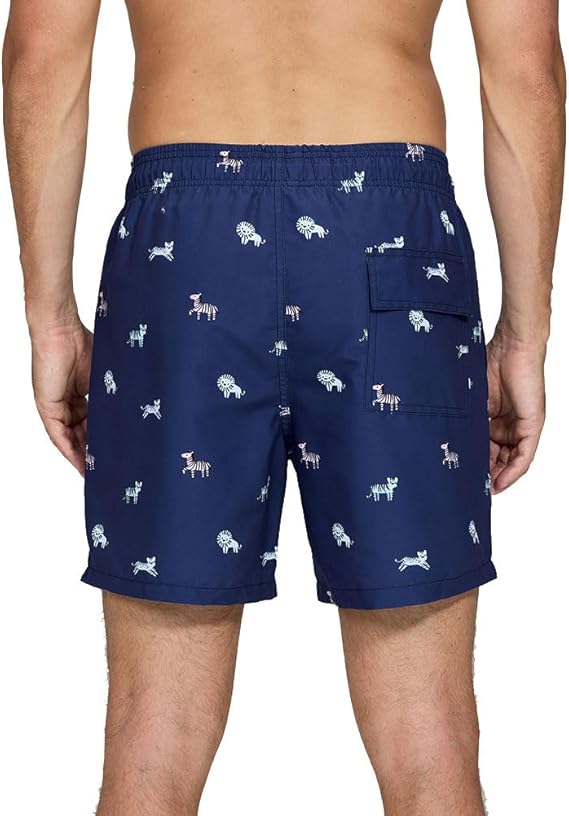 Темно-синие пляжные шорты с принтом в виде зверушек. Отлично подходят для пляжного отдыха и плавания. С сеткой внутри. Быстросохнущая ткань.