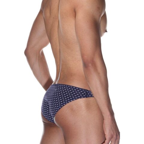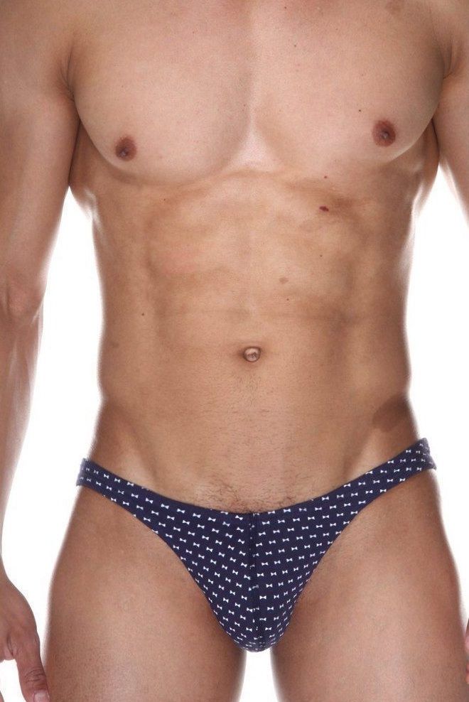 Темно-синие трусы-слипы с принтом в виде бантов.