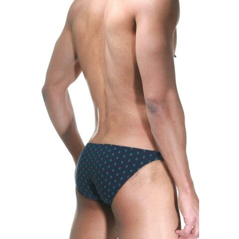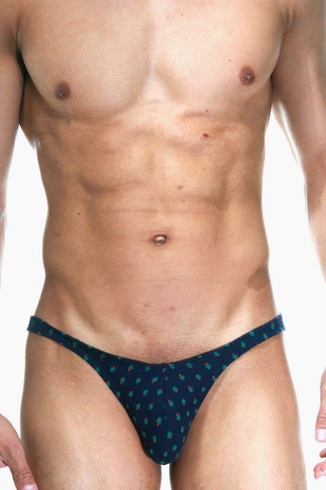 Темно-синие трусы-слипы с принтом в виде ёлочек и узким бочком.