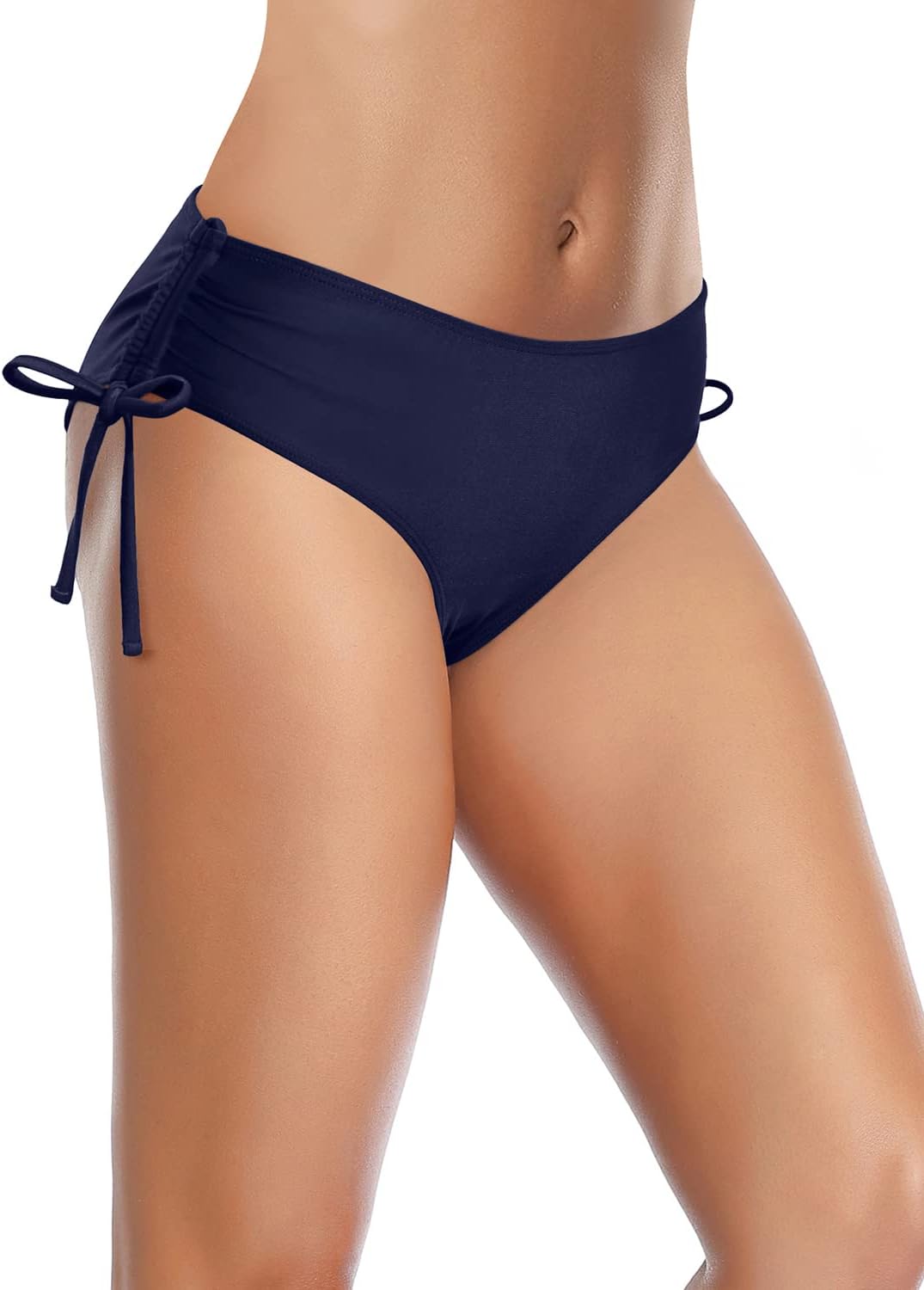 Темно-синие женские плавки с утяжкой по бокам. Быстросохнущая ткань.